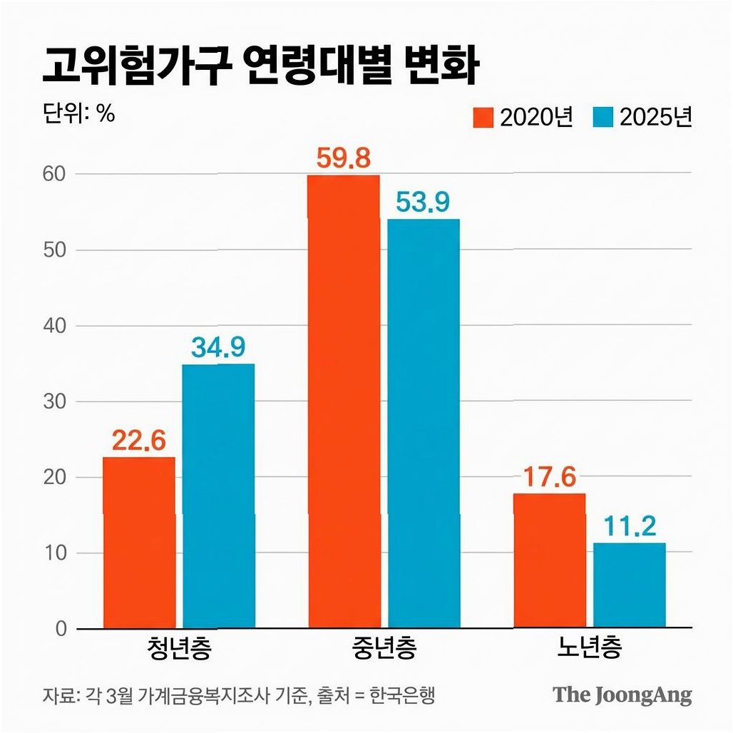 고위험 가구 급증, 청년층 '빚투' 후폭풍과 자영업자 부실 위험 경고