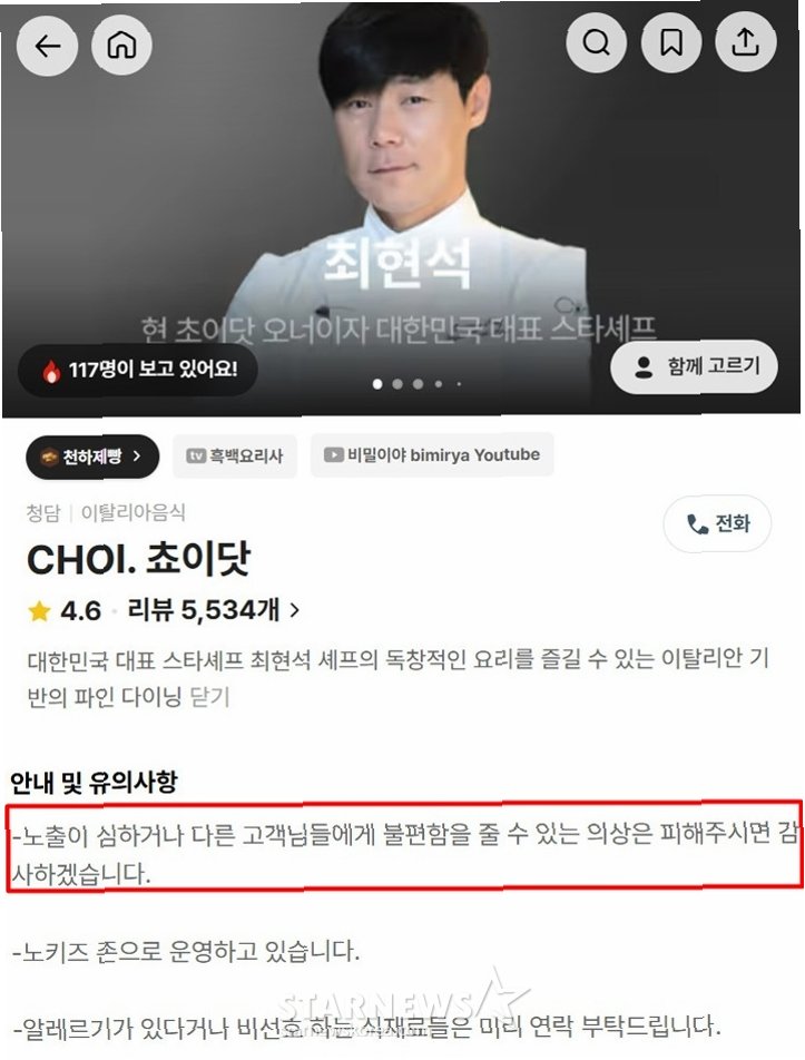 A.일부 이용자들은 해당 안내가 이전부터 존재했던 문구이며, 최근 최현석 셰프에 대한 관심이 높아지면서 재조명된 것이라고 주장하고 있습니다.