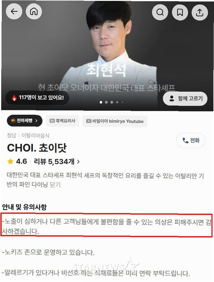 최현석 셰프 레스토랑, '노출 의상' 안내문 재조명