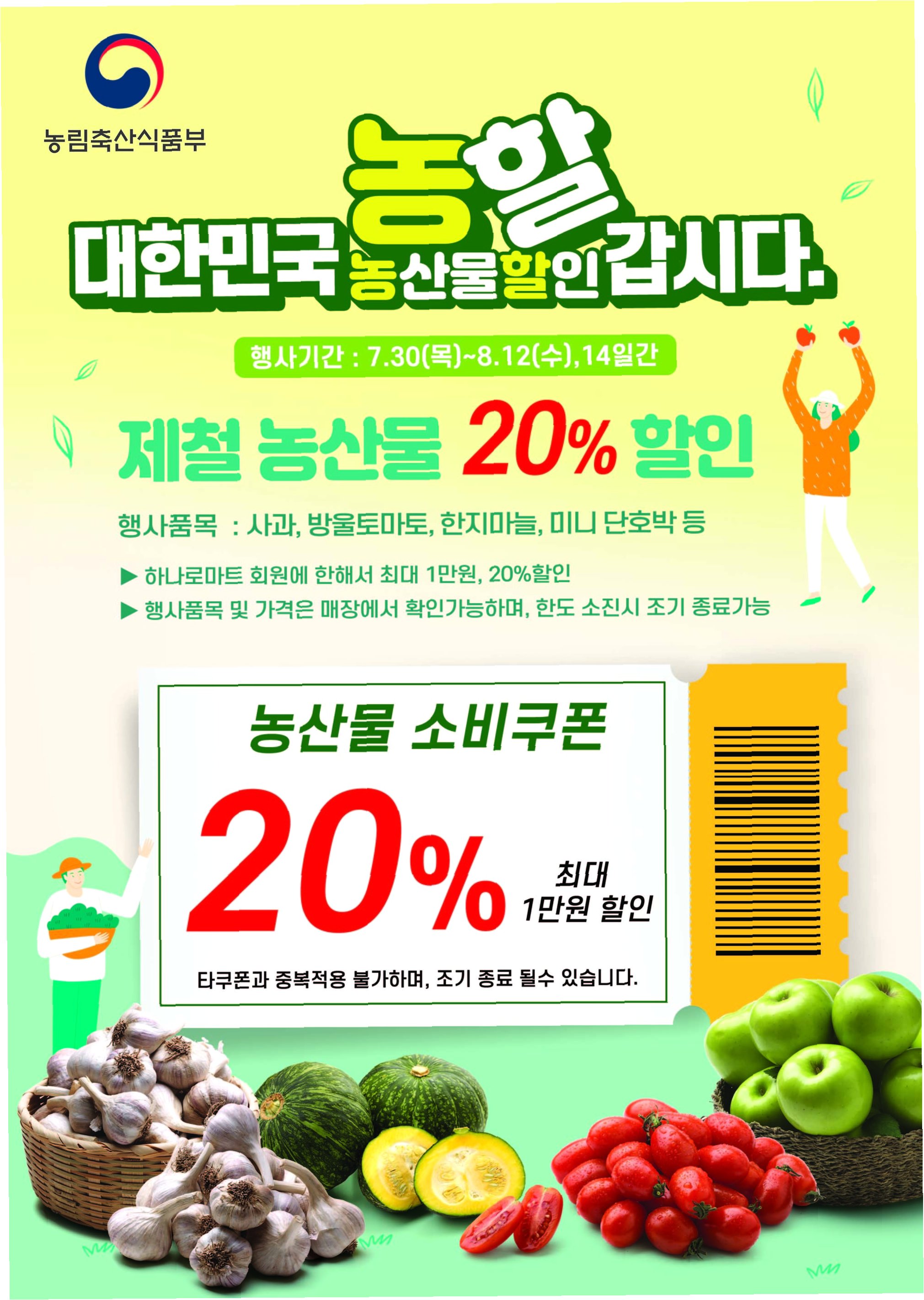 정부의 농축산물 할인 지원 사업이 대형 유통업체의 꼼수와 정부의 방관으로 인해 본래의 취지를 잃고 있다는 내용입니다.  소비자에게 돌아가야 할 혜택이 유통업체에 돌아가고, 농가와 소비자 모두 피해를 보는 상황입니다.