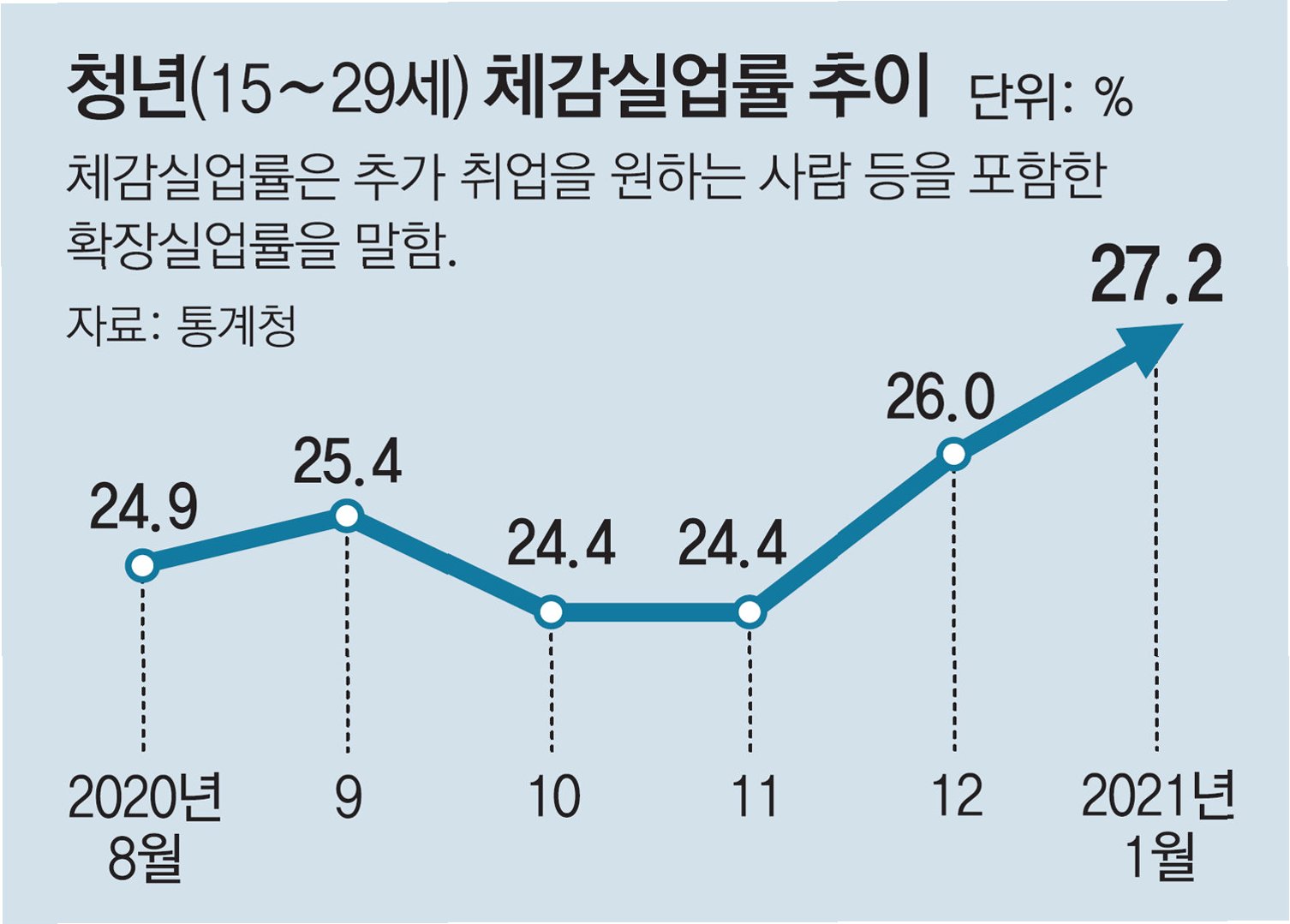 장기화되는 실업: 1년 이상, 20대의 고통