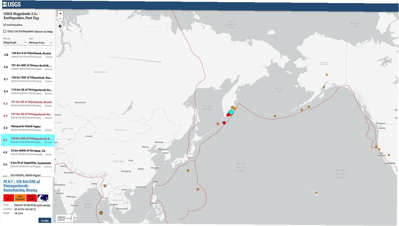유럽지중해지진센터(EMSC)에 따르면, 첫 번째 지진은 캄차카반도 동쪽 바다에서 발생했으며, 진앙은 페트로파블롭스크-캄차츠키에서 동남쪽으로 136km 떨어진 지점입니다. 두 번째 지진은 이보다 더 가까운 110km 지점에서 발생했습니다. 이로 인해 러시아와 일본을 포함한 주변 지역에 쓰나미 경보가 발령되었고, 주민들은 안전을 위해 대피해야 했습니다.