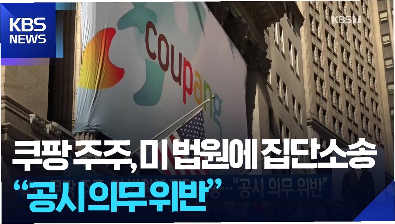 미국에서 쿠팡을 상대로 공시 의무 위반을 문제 삼은 집단 소송이 제기됐습니다. 이번 소송은 쿠팡이 정보유출 사실을 알리지 않아 주주들이 피해를 입었다는 게 주요 내용입니다. 쿠팡이 지난달 18일 개인정보 유출 사실을 알고서도 한 달이 지나서야 공시한 건 4영업일 내에 공시해야 하는 의무를 위반한 것이라는 주장입니다. 뉴욕증시에서 쿠팡 주가는 정보 유출 사실을 공지하기 전날 28.16달러에서 지난주 23.2달러로 18%나 하락했습니다.