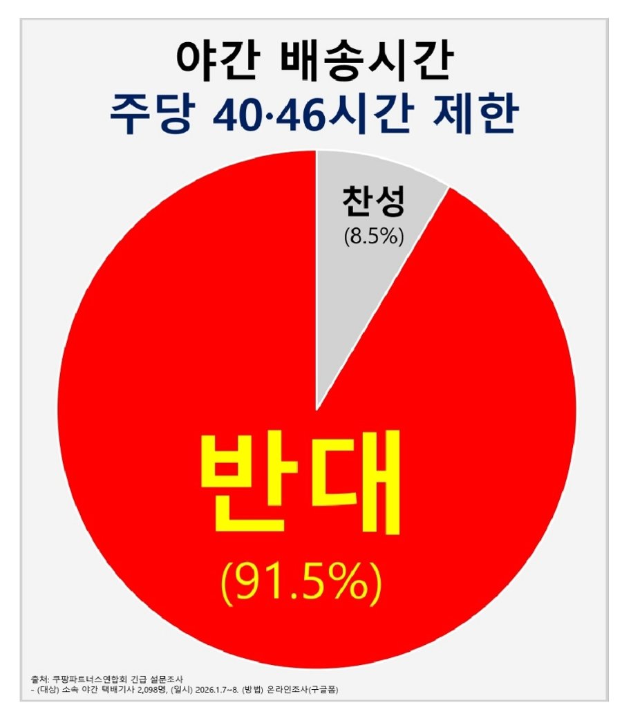 쿠팡파트너스연합회(CPA)의 설문조사 결과는 충격적입니다. 응답자의 91.5%가 야간 배송 시간 제한에 반대했는데요. 시간 제한은 곧바로 생계의 위협으로 이어진다는 절박한 외침입니다.