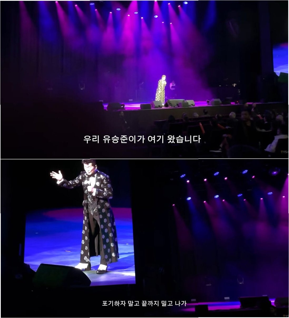 태진아의 진심 어린 응원에 유승준은 무대 아래에서 눈물을 보였습니다. 영상 설명란을 통해 그는 '오랜만에 뵙게 되어 너무 반갑고 뜻깊은 시간이었다'며, '짧은 순간이었지만 따뜻한 격려와 배려가 오래 남을 것 같다'고 소감을 밝혔습니다. 이는 힘든 시간을 보내고 있는 유승준에게 큰 위로가 되었습니다.