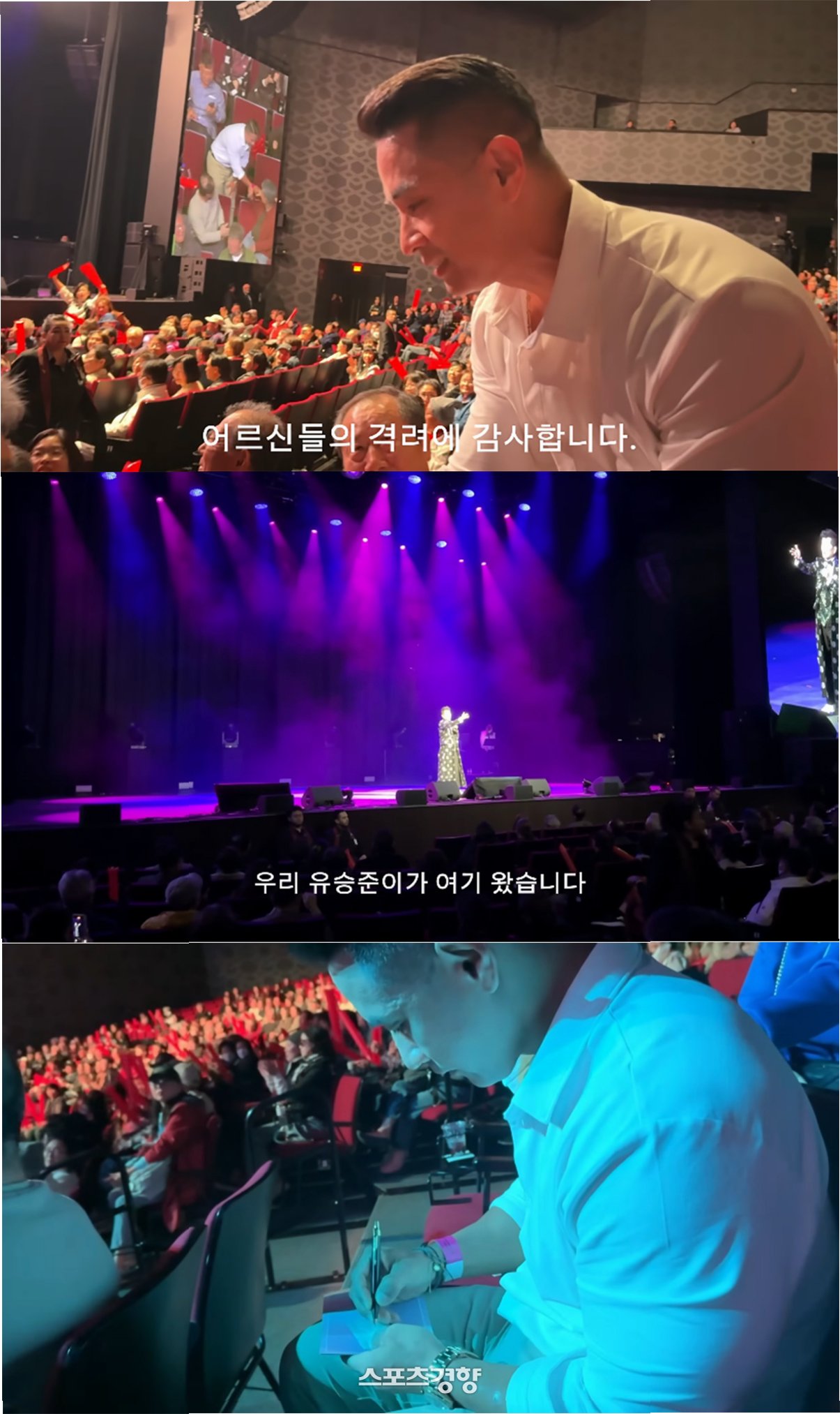 A.유승준은 주로 유튜브 채널을 통해 자신의 근황을 알리고 있으며, 이번 영상은 태진아 콘서트에 참석한 모습을 담고 있습니다.