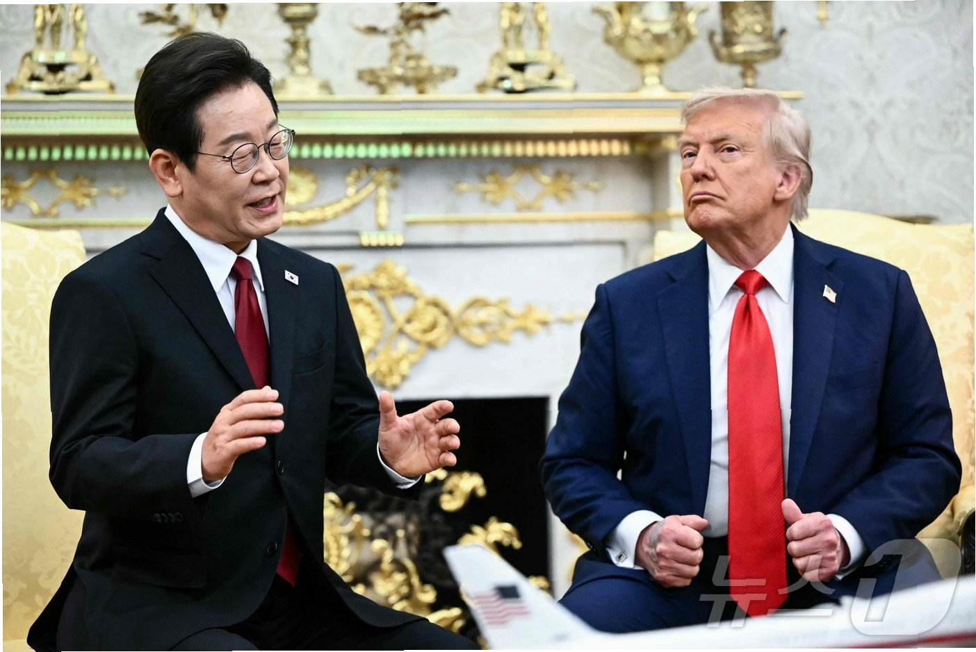 예정 시간보다 늦게 시작된 회담은, 이 대통령의 백악관 도착 이후 부드러운 분위기로 전환되었습니다. 트럼프 대통령은 이 대통령을 직접 맞이하며, 붉은색 넥타이를 맞춰 매고 악수를 나누는 등 친밀한 모습을 연출했습니다. 회담 내내 칭찬과 덕담이 오가며 화기애애한 분위기가 이어졌습니다. 트럼프 대통령은 한국의 군사장비 구매에 대한 기대를 드러내고, 이 대통령의 선거 승리를 축하했습니다. 이 대통령은 트럼프 대통령의 오벌오피스를 칭찬하며, 긍정적인 관계 구축을 위한 노력을 보였습니다.