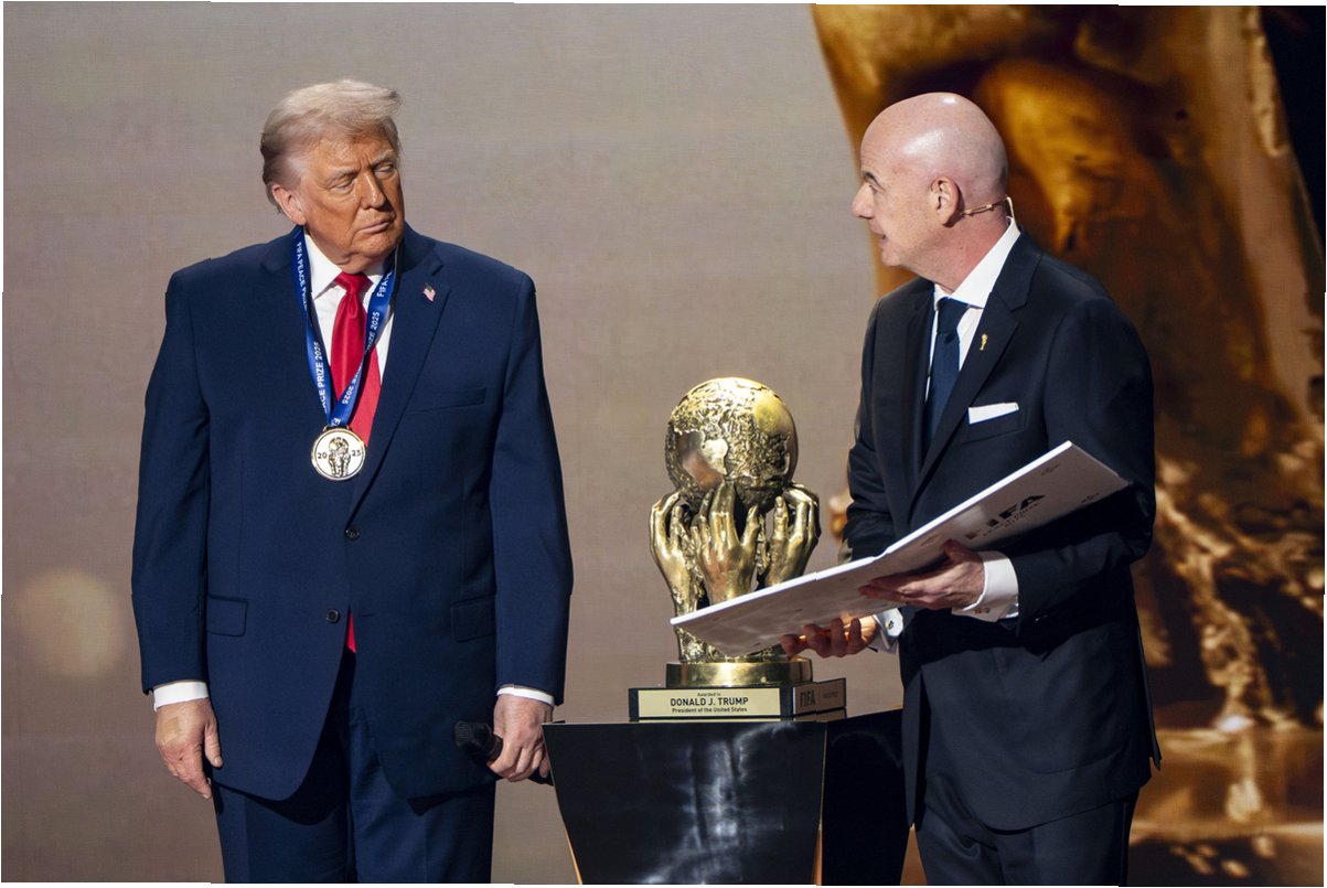 도널드 트럼프 전 미국 대통령이 국제축구연맹(FIFA)이 신설한 FIFA 평화상을 수상했습니다. 잔니 인판티노 FIFA 회장은 5일(현지시간) 미국 워싱턴 D.C. 케네디 센터에서 열린 2026 북중미 월드컵 본선 조 추첨식 무대에서 트럼프 대통령에게 메달과 함께 인증서를 전달했습니다. 인판티노 회장은 FIFA 평화상이 전 세계 평화와 단합을 증진하는 데 헌신한 개인에게 수여된다고 밝혔습니다.