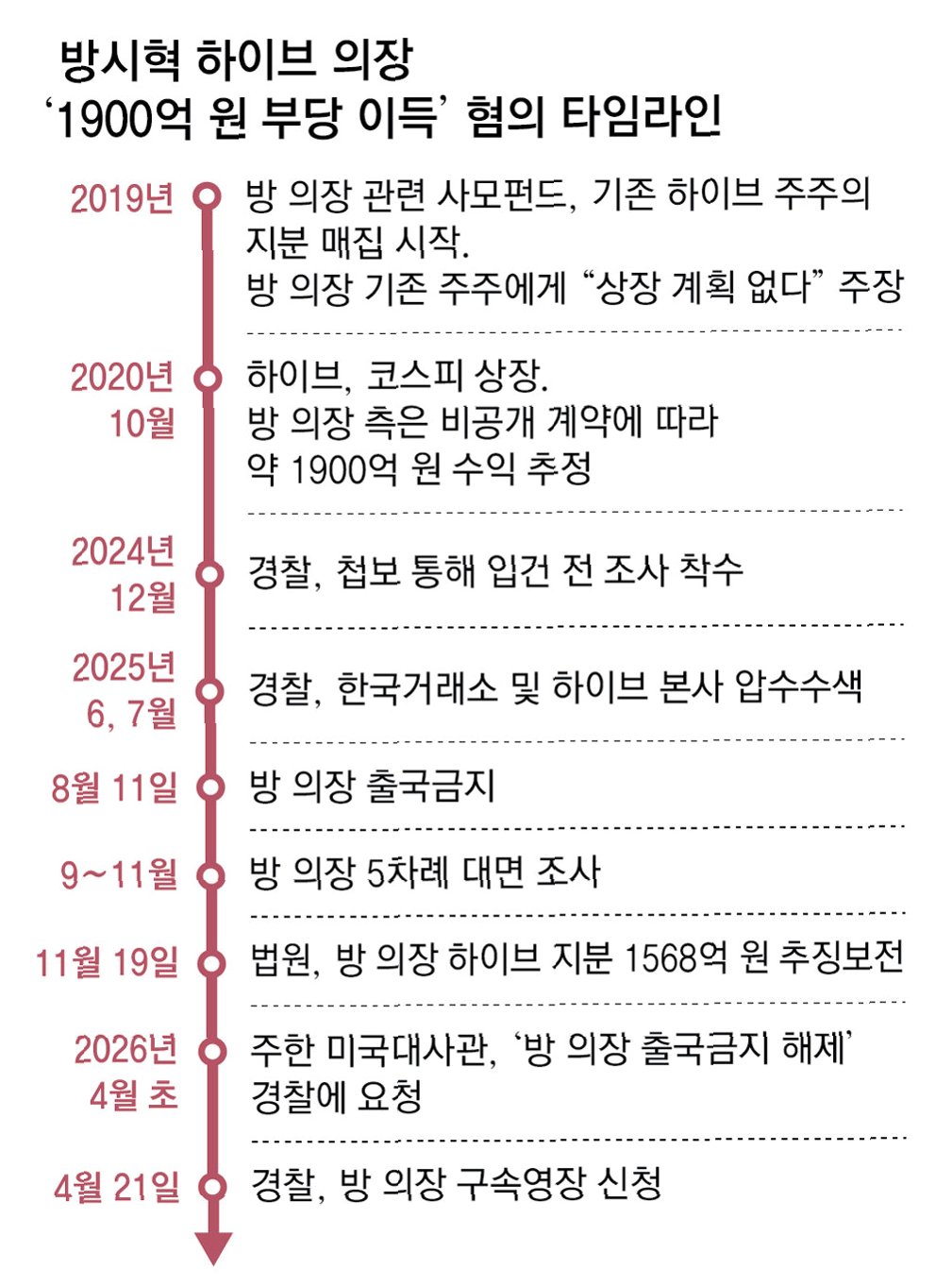핵심 요약: 하이브 방시혁 의장, 구속영장 신청 후 검찰 심리 중