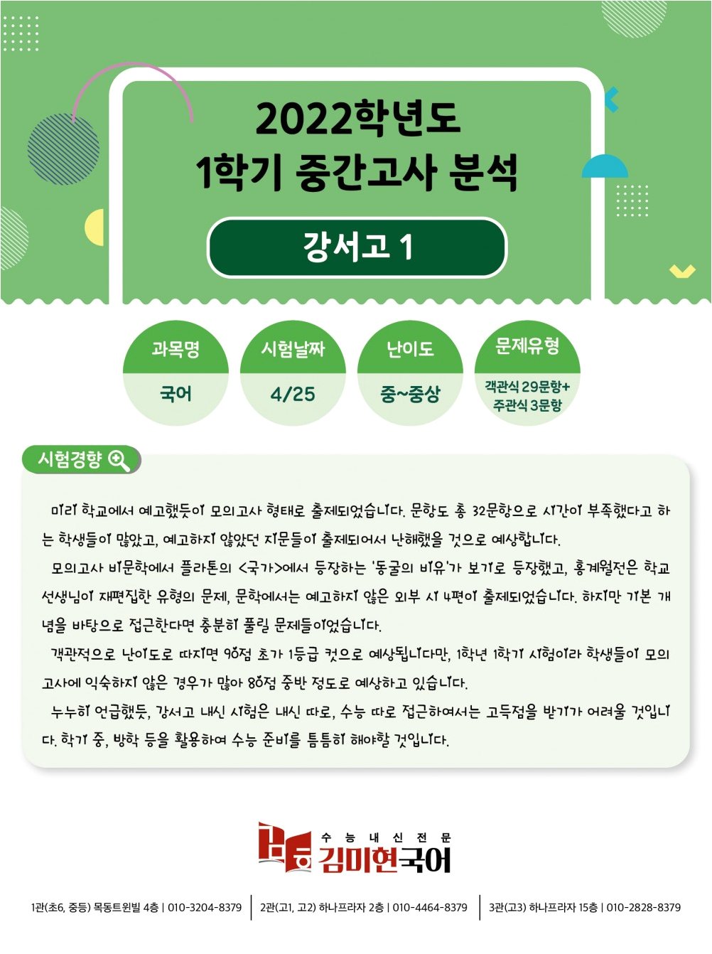 A.학교 측은 해당 문제들이 수능 및 학력평가 기출 문항을 변형한 것이며, 학원 교재를 참고하지 않았다고 밝혔습니다. 또한 학생들의 직접적인 이의 제기는 없었다고 전했습니다.