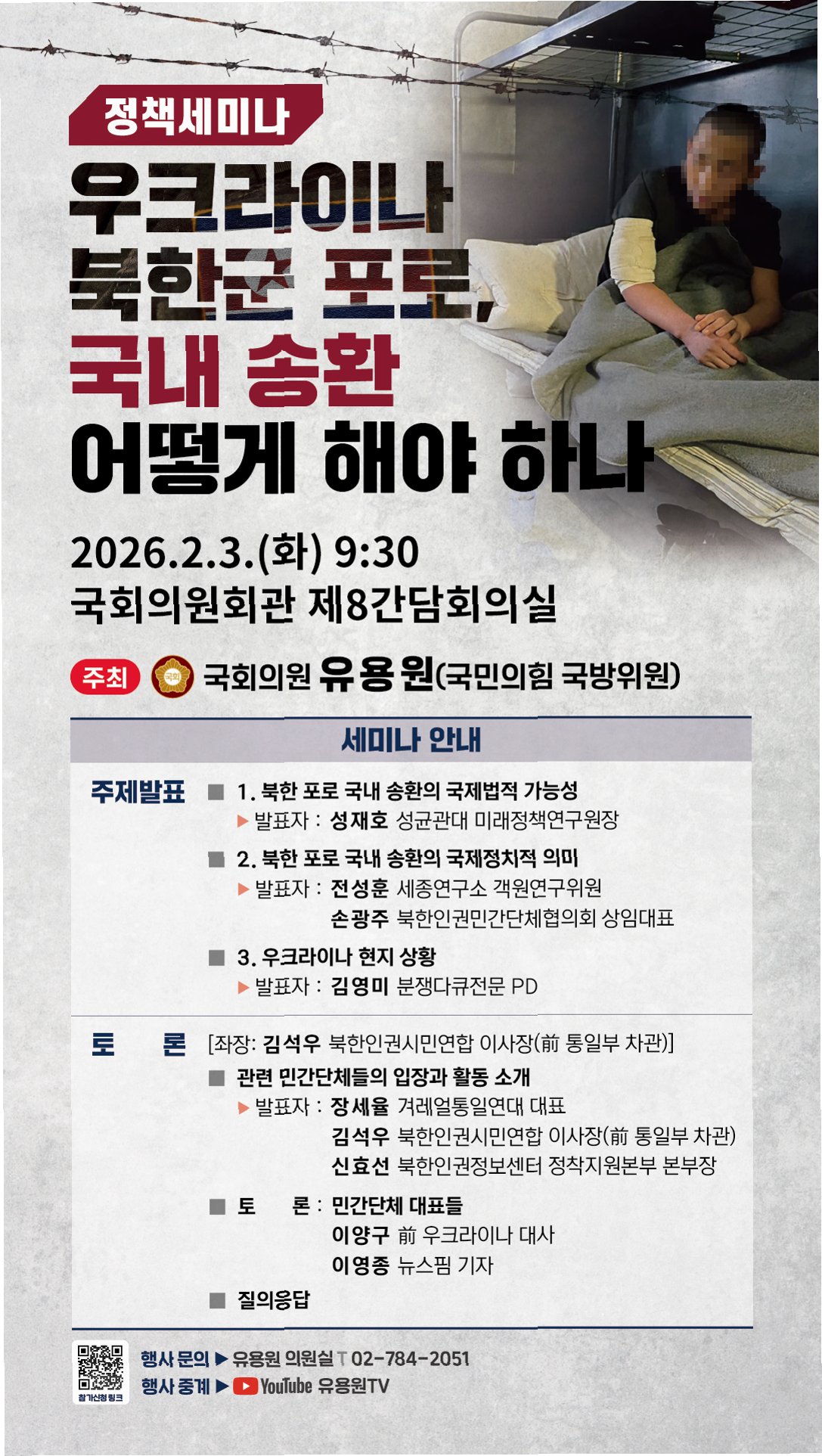 현재 우크라이나 포로수용소에 수감 중인 것으로 알려진 북한군 포로 2명의 불안한 심리 상태가 우려되는 상황입니다. 탈북민 단체인 겨레얼통일연대의 장세율 대표는 이들이 국제법에 따라 보호받아야 할 대상임을 우크라이나 정부가 인정하고 분류해야 한다고 주장했습니다. 이는 이들의 북한 강제 송환 가능성을 차단하기 위한 중요한 조치입니다.