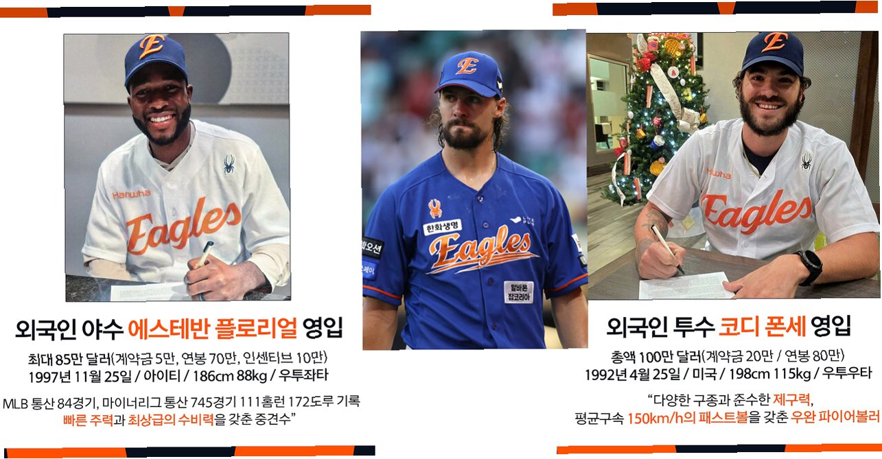 A.지난해 리그 최강 원투펀치였던 폰세와 와이스가 모두 메이저리그로 향한 가운데, 화이트와 에르난데스가 올 시즌 한화의 핵심 역할을 할 것으로 기대됩니다.