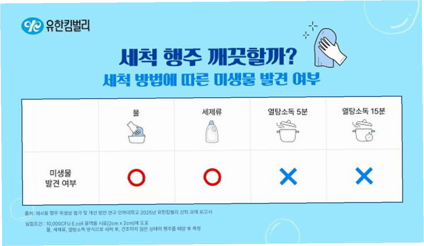 유한킴벌리와 인하대학교의 연구 결과에 따르면, 세제를 사용해 행주를 세척한 후 12시간 건조해도 세균이 완전히 제거되지 않고 증식할 가능성이 있는 것으로 나타났습니다. 이는 우리가 흔히 사용하는 세척 방식으로는 행주 내 세균을 완벽하게 제거하기 어렵다는 것을 의미합니다. 겉으로는 깨끗해 보여도, 보이지 않는 곳에서 세균이 번식하고 있을 수 있다는 점을 명심해야 합니다.