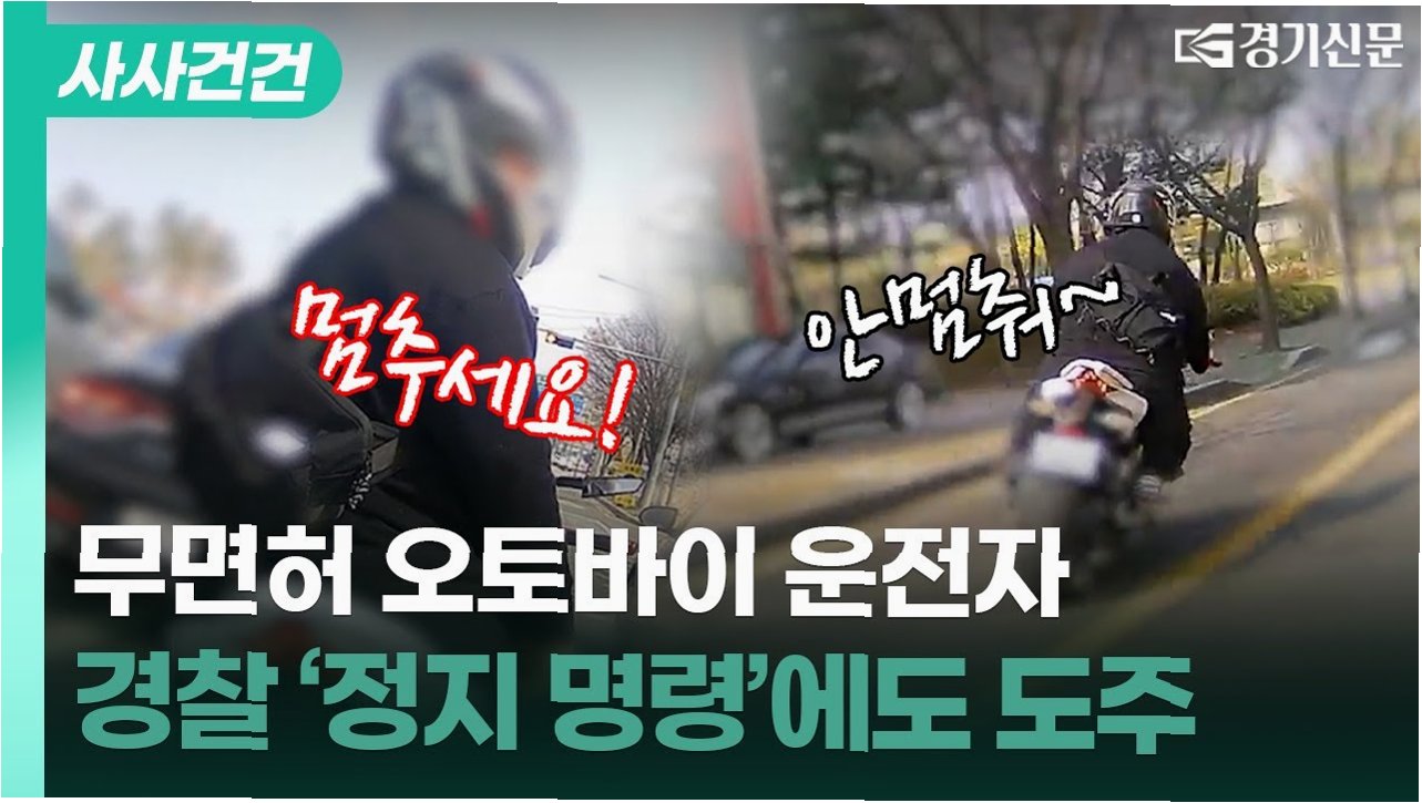 A.오토바이 운전자는 무면허 상태였기 때문에 경찰의 단속을 피하기 위해 도주한 것으로 보입니다.