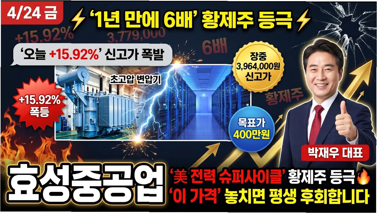 효성중공업이 견조한 실적과 역대급 수주를 바탕으로 '황제주'로서의 입지를 굳히고 있습니다. 증권가에서는 400만 원 돌파 전망까지 나오고 있어, 앞으로의 행보가 더욱 주목됩니다.