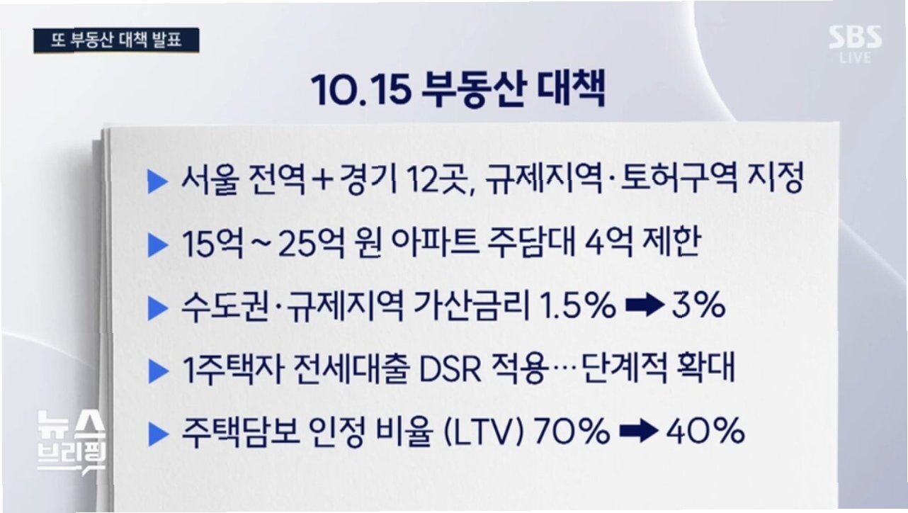 10·15 부동산 대책 후폭풍: 서울 아파트 115곳, 주담대 2억 삭감… 자금 계획 '비상'
