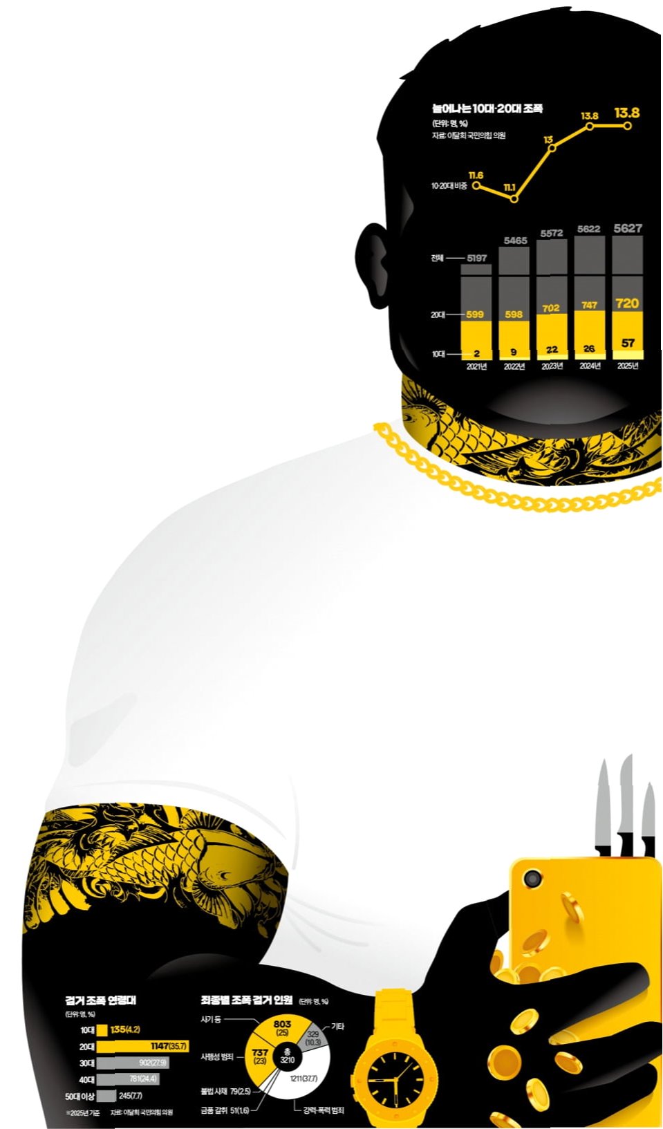 10대와 20대 젊은층이 보이스피싱, 코인 사기, 온라인 도박 등 디지털 범죄를 통해 새로운 수익원을 창출하며 조직폭력의 주축으로 부상하고 있습니다. 이들은 계파를 초월해 또래끼리 연대하며, SNS를 통해 미화된 모습은 젊은층의 불법 행위 감수성을 높이고 있습니다. 전문가들은 강력한 조기 개입을 통한 젊은층의 폭력조직 진입 차단을 촉구하고 있습니다.