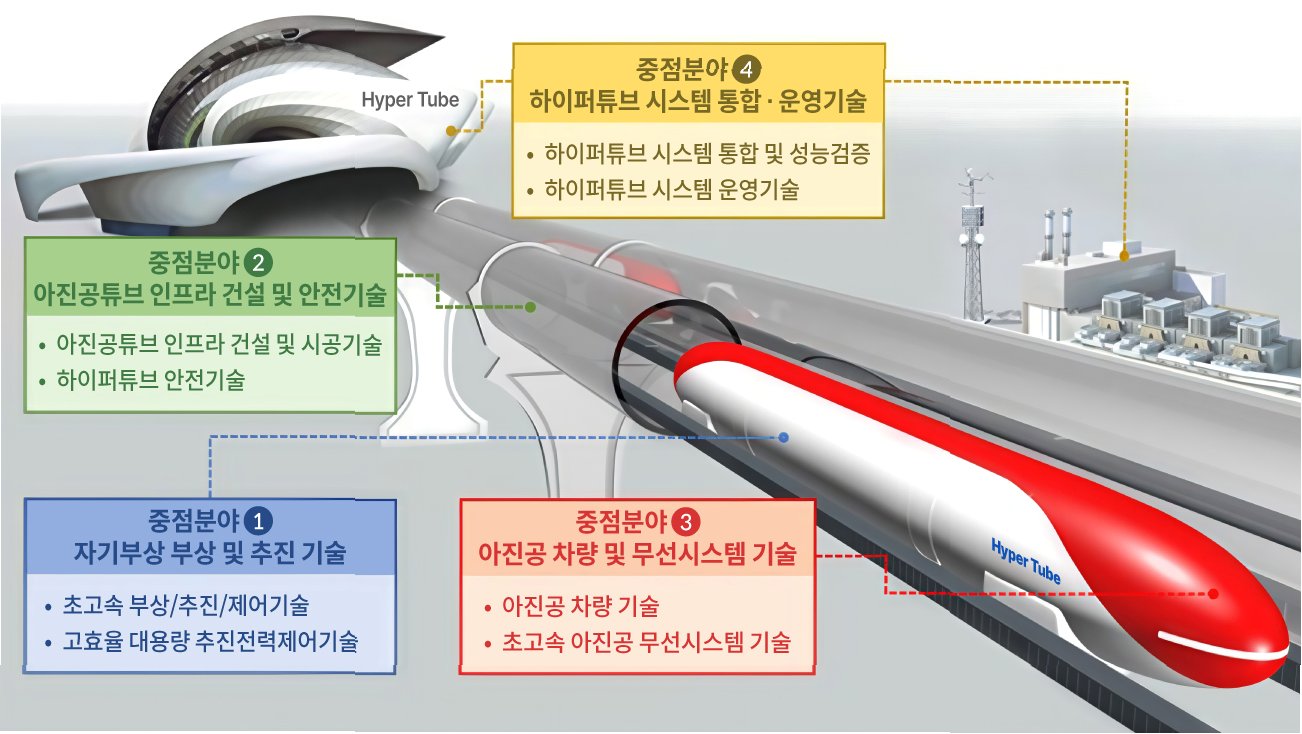 A.하이퍼루프는 대형 진공 튜브 내에서 자기부상 기술을 활용하여 시속 1000km 이상으로 주행하는 미래형 교통 시스템입니다.