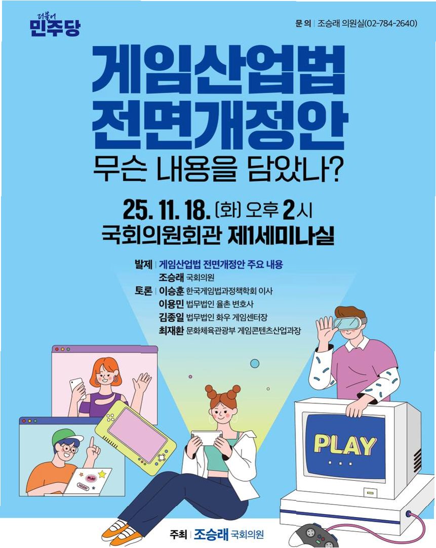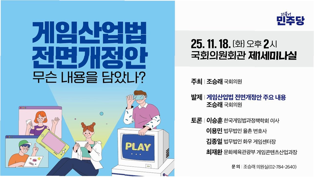 20년 만에 전면 개편되는 게임산업 관련 법·제도 체계를 두고 국회, 정부, 업계, 법조계 인사들이 한자리에 모여 열띤 논의를 펼쳤습니다. 조승래 더불어민주당 의원이 대표 발의한 '게임산업법 전부개정안'은 게임산업의 획기적인 변화를 예고하며, 게임 시장의 새로운 미래를 열어갈 것으로 기대됩니다.