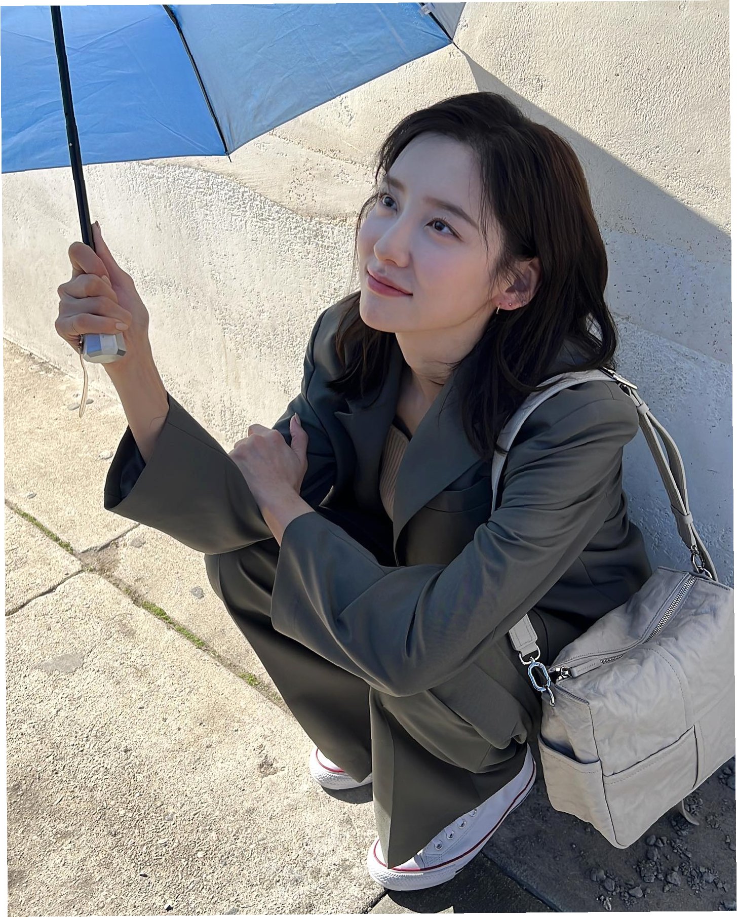박지현의 스타일: 빈티지 무드의 스웨이드 백