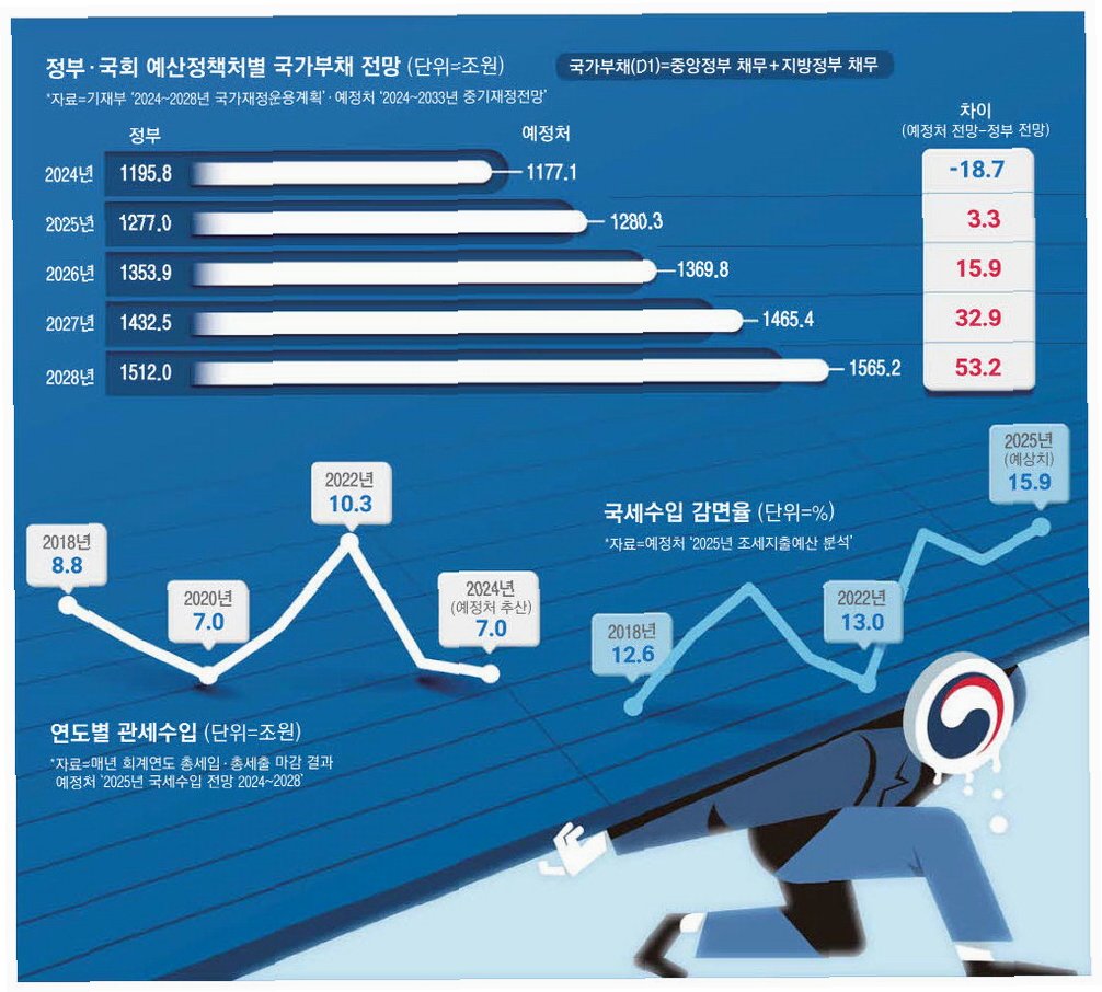 A.전문가들은 추가적인 세수 확보의 어려움과 국채 발행 의존도를 높여 재정 건전성을 악화시킬 수 있다는 점을 지적합니다.