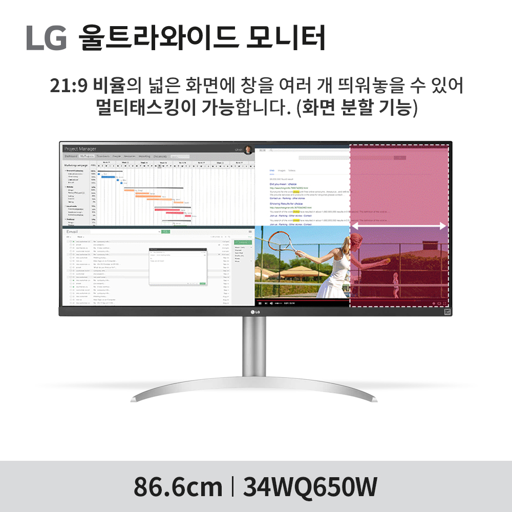 최.종 38.만 LG 34WQ650W 86cm(34인치) 울트라와이드모니터 스피커내장 : LG전자인증점 지오비전