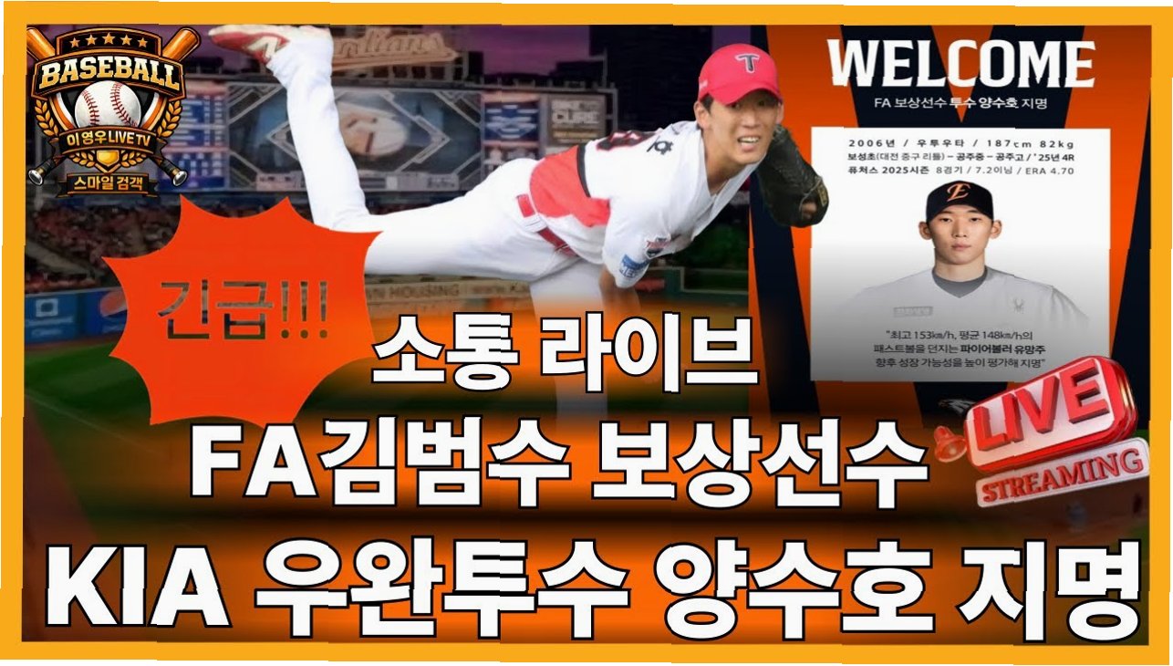 한화 이글스가 FA 김범수의 보상선수로 KIA의 유망주 투수 양수호를 지명하며 미래 투수진 강화에 나섰습니다. 미국 연수까지 보냈던 KIA의 기대를 한 몸에 받았던 양수호의 성장 가능성에 귀추가 주목됩니다.