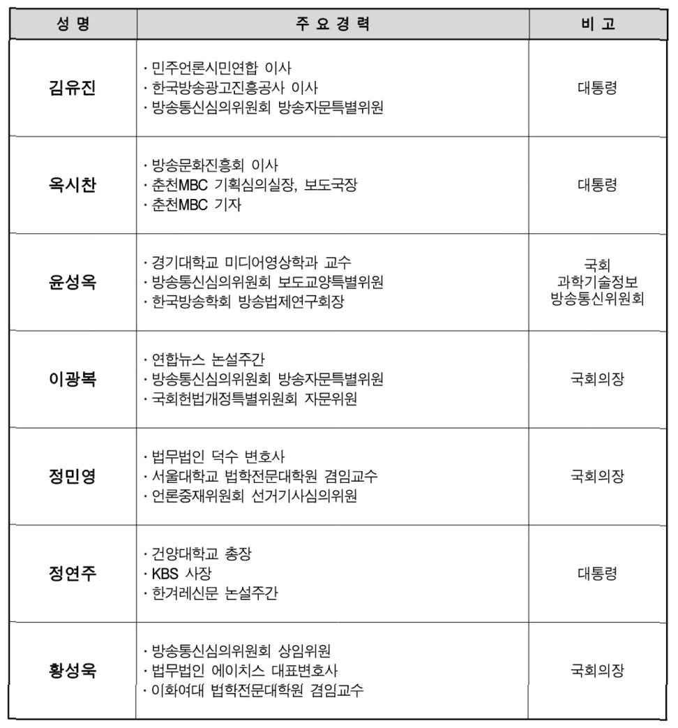 방송미디어통신심의위원회 새 위원 내정