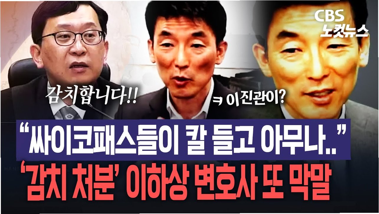 이하상 변호사는 지난 21일 유튜브 라이브 방송에서 내란 중요임무 종사 혐의로 기소된 한 전 총리에게 중형을 선고한 이 부장판사와, 고위공직자범죄수사처의 체포영장 집행을 방해한 혐의로 윤석열 전 대통령에게 징역 5년을 선고한 백대현 부장판사를 "흉기가 된 판사들"이라고 지칭했습니다. 그는 "사이코패스들이 칼을 들고 막 돌아다니면서 아무나 찌르는 것 같은 느낌"이라며, "대현이가 짖어도 가고 진관이가 짖어도 간다. 반드시 이긴다"는 등 극단적인 표현을 사용했습니다. 또한, 이재명 대표를 "사탄의 계보에 있는 사람들", "사육당한 아이들"과 같은 비하적인 표현으로 엮어 언급하며 논란을 증폭시켰습니다.