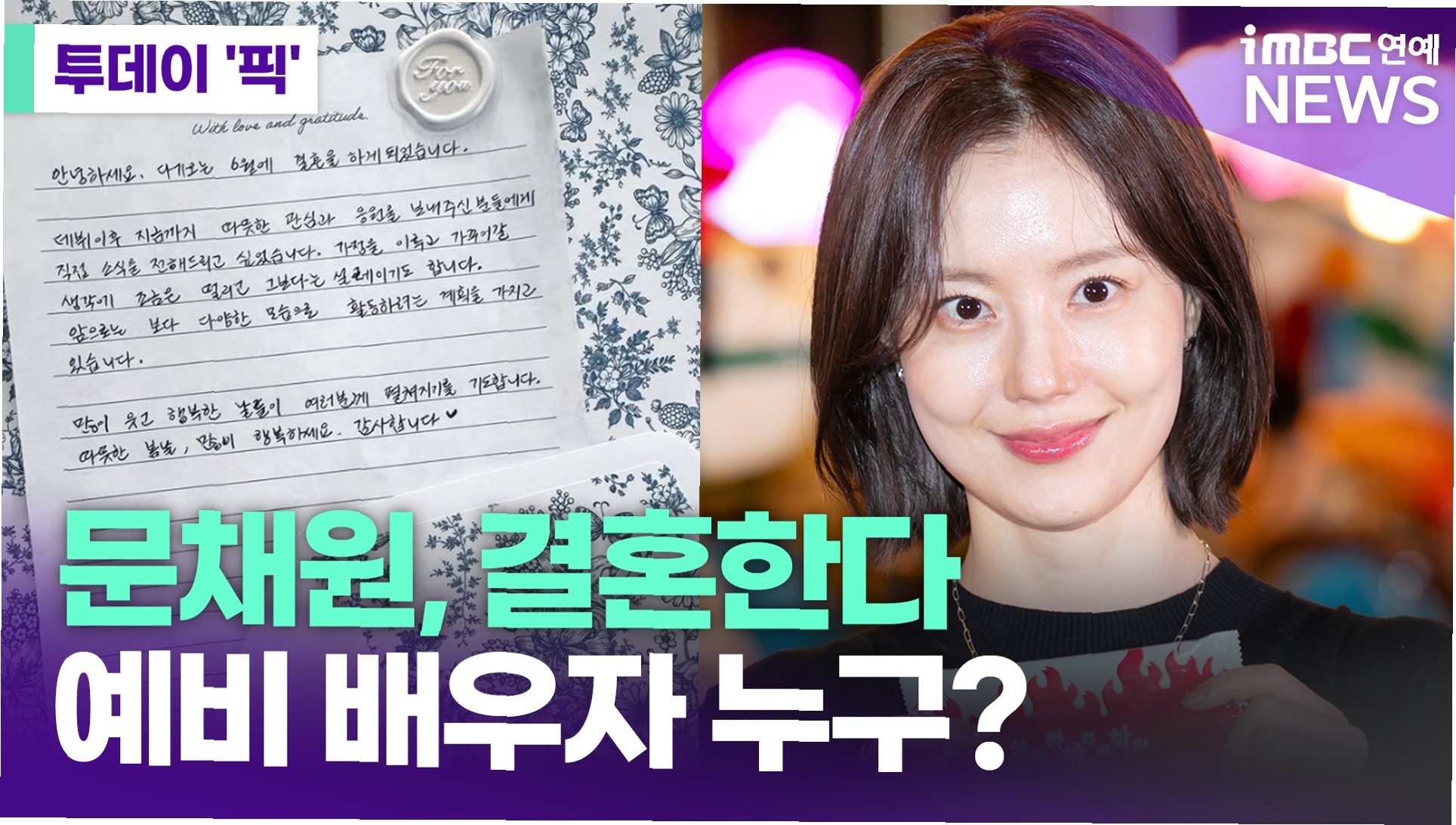 배우 문채원이 비연예인 연인과 오는 6월 결혼합니다. 오랜 교제 끝에 결실을 맺는 두 사람의 앞날에 축복이 가득하길 바랍니다.