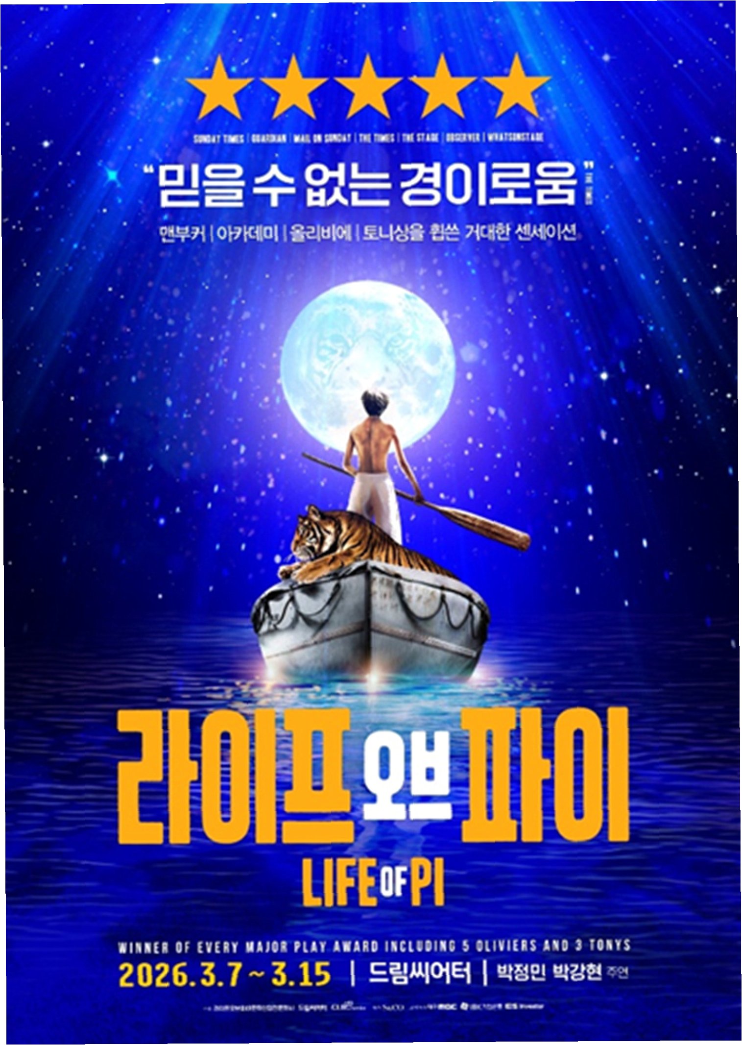 연극 '라이프 오브 파이'는 태평양 한가운데서 조난된 인도 소년 파이가 벵골 호랑이 '리처드 파커'와 함께 227일간 표류하다 구조되는 과정을 그린 작품입니다. 이날 무대에는 박정민을 비롯해 황만익, 주아, 진상현 등 실력파 배우들이 오를 예정이었습니다. 특히 이번 공연은 박정민이 8년 만에 연극 무대로 돌아오는 복귀작으로 알려지며 공연 전부터 큰 주목을 받아왔기에, 갑작스러운 취소는 더욱 아쉬움을 남겼습니다.