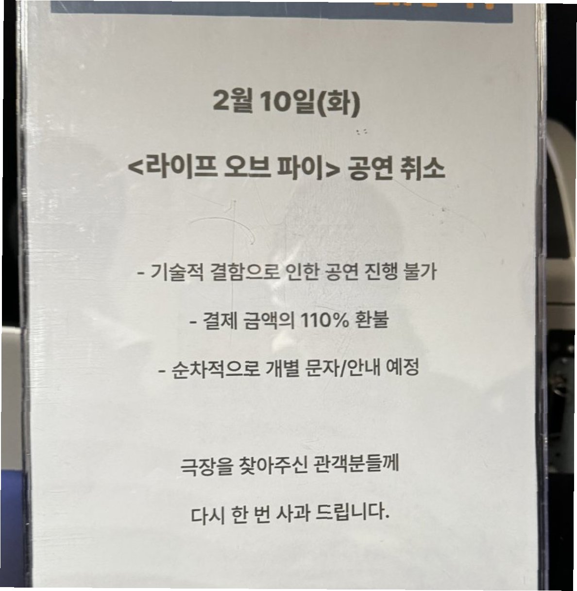 제작사는 현장 안내문을 통해 예매 관객들에게 결제 금액의 110%를 환불하겠다고 밝혔습니다. 또한, 순차적으로 개별 문자 안내를 진행하며 공연을 찾아주신 관객들에게 고개 숙여 사과했습니다. 하지만 이러한 보상 방침에도 불구하고 현장의 불만은 쉽게 가라앉지 않았습니다. 특히 주연 배우 박정민의 무대를 보기 위해 연차를 사용하거나 전국 각지에서 상경한 관객들은 취소 시점이 지나치게 임박했다는 점을 강하게 지적했습니다.