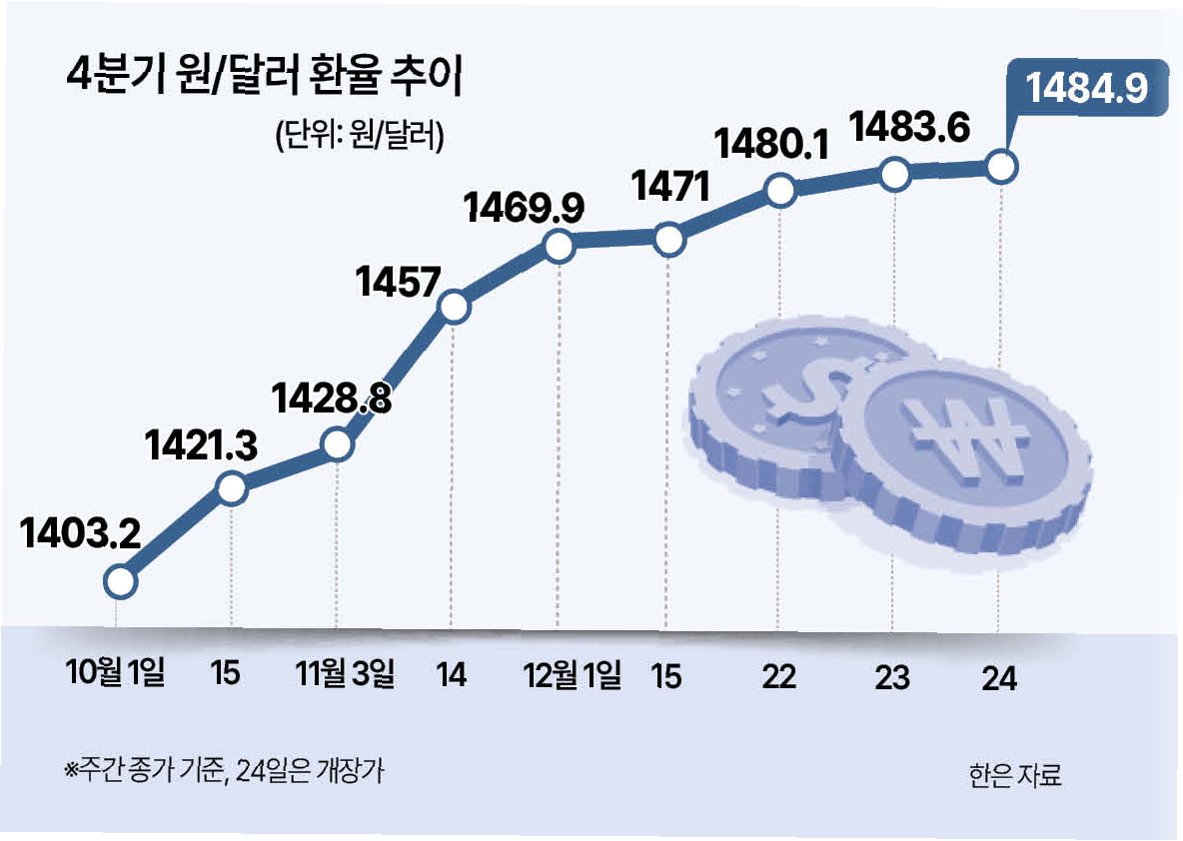외환 거래량이 늘어나는 가운데, 지난해 말부터 원·달러 환율은 높은 수준을 유지하며 불안정한 모습을 보이고 있습니다. 정부는 이러한 고환율 현상의 주요 원인으로 달러 수요의 과도한 증가로 인한 원화 가치 하락, 즉 수급 불균형을 지목했습니다. 실제로 지난해 7~9월 1300원 후반대에 머물던 원·달러 평균 환율은 10월 1426.0원, 11월 1460.5원, 12월 1466.7원으로 꾸준히 상승하며 높은 수준을 기록했습니다. 이는 우리 경제에 상당한 부담으로 작용할 수 있는 부분입니다.
