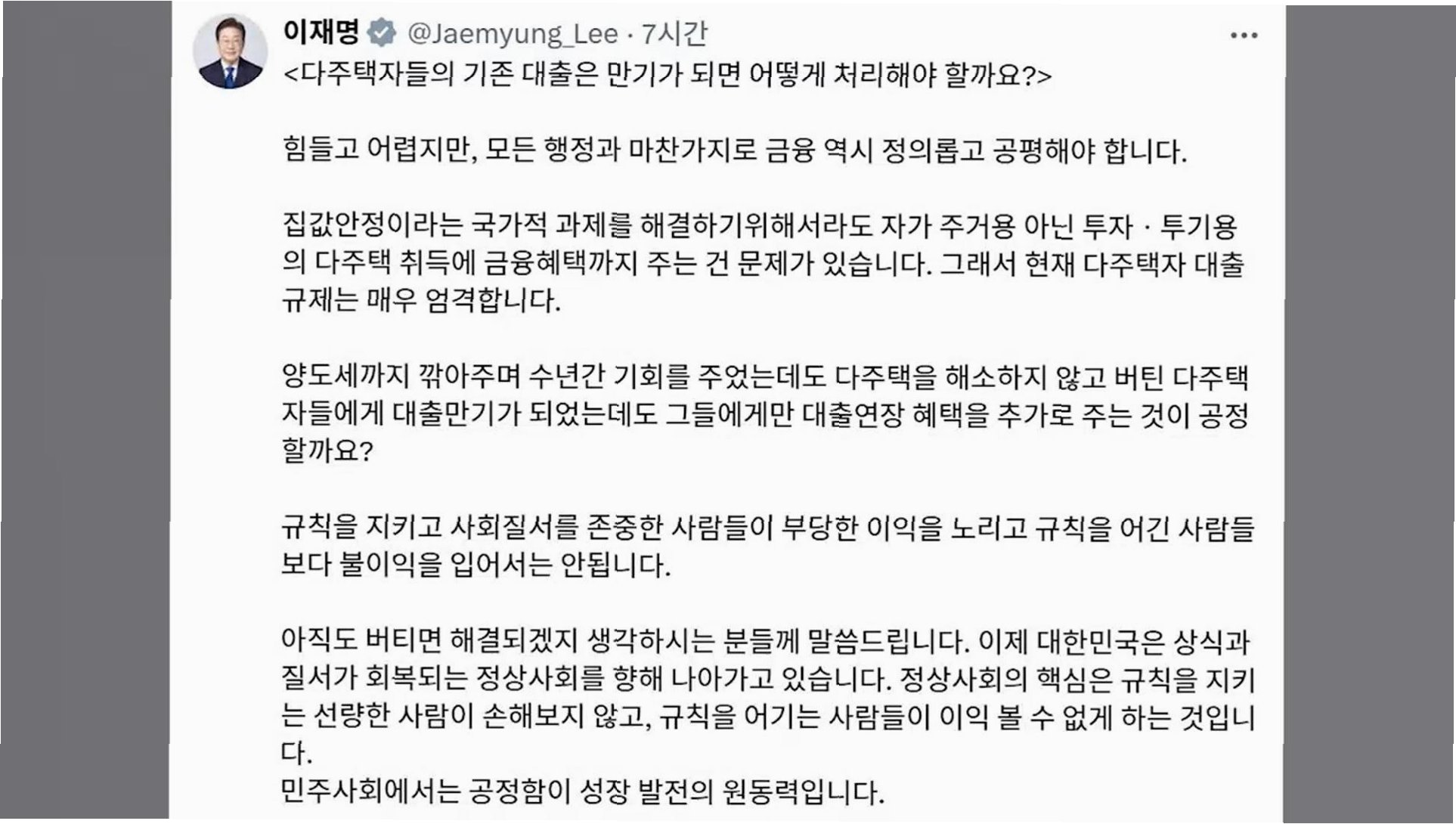 핵심 요약: 다주택자 대출 규제 강화, 공정 사회 실현