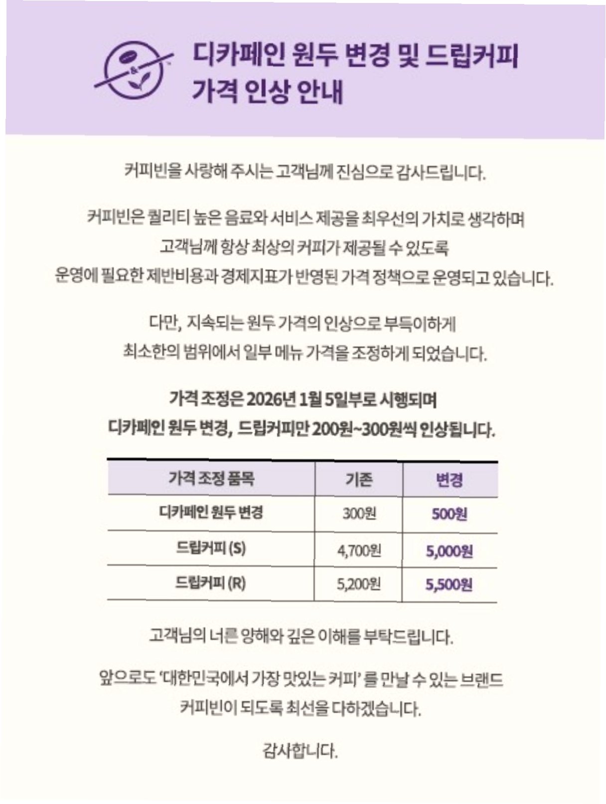 Q.커피값 인상의 가장 큰 원인은 무엇인가요?