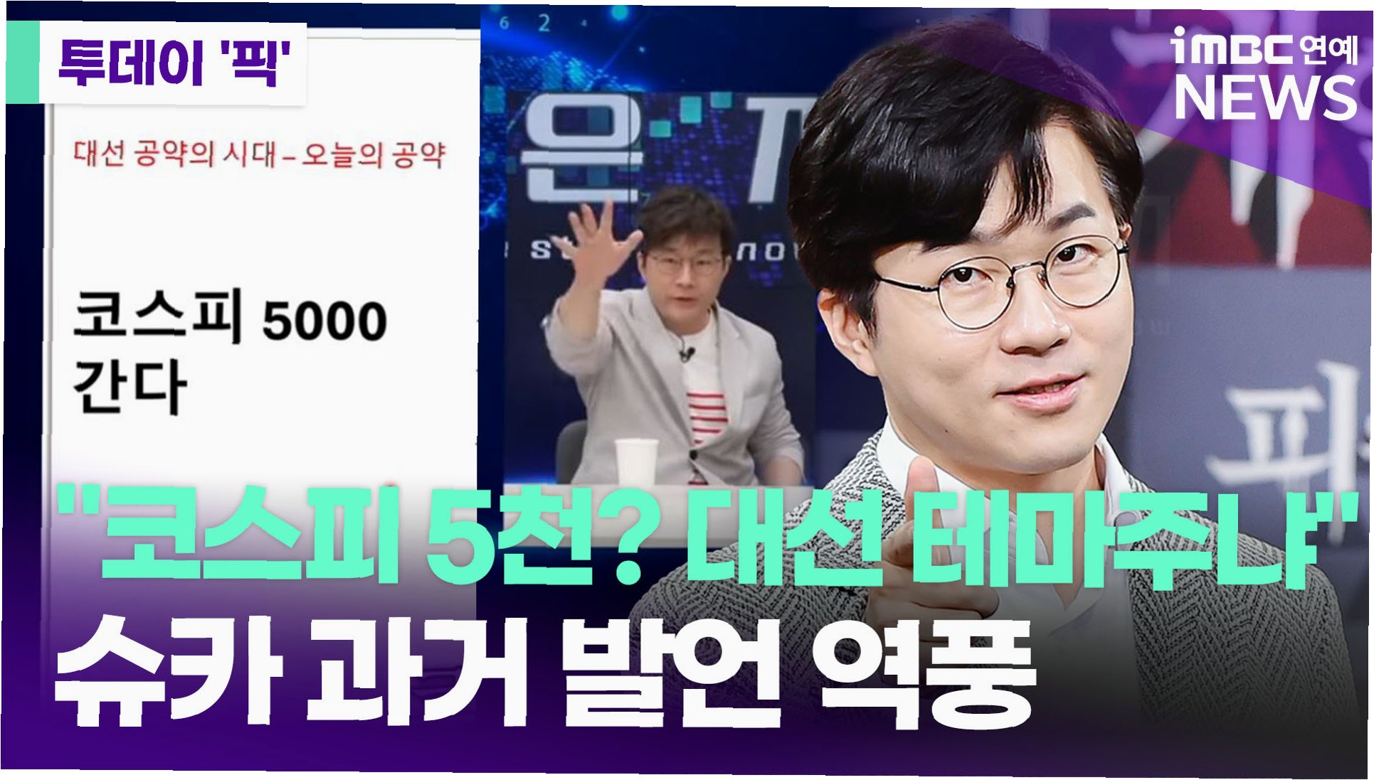 이재명 당시 대선 후보의 '코스피 5000' 공약은 많은 이들에게 비현실적으로 여겨졌습니다. 특히 365만 구독자를 보유한 유튜버 슈카월드는 경제 유튜브 채널에 출연해 "주가 조작 원스트라이크 아웃, 상법 개정 등 좋은 거 다 해서 코스피 5000"이라며 무표정으로 박수를 치는 등 공약을 비꼬는 듯한 발언으로 화제를 모았습니다. 당시 그는 "앞으로 얼마나 올라야 되냐면 딱 100%만 오르면 된다. 대선 테마주 '코스피'"라며 회의적인 시각을 드러냈습니다. 하지만 최근 코스피가 5100선을 돌파하며 사상 최고치를 경신하자, 과거 그의 발언이 재조명되며 누리꾼들의 비판적인 목소리가 나오고 있습니다.