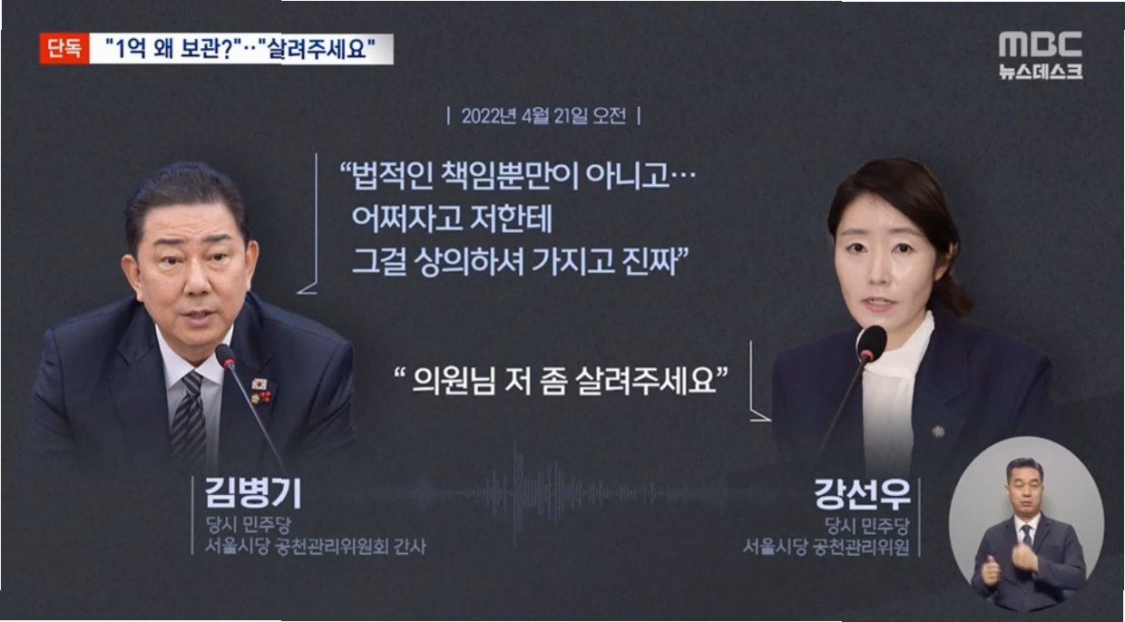 MBC가 공개한 녹취록에는 김병기 원내대표가 강선우 의원에게 '1억 원을 받은 사실을 알고 있다'는 취지로 말하는 내용이 담겨 있습니다. 김 원내대표는 '일반인들이 이해하기 쉽지 않은 얘기'라고 언급하며, '법적인 책임뿐만이 아니다'라고 말했습니다. 이에 강선우 의원은 '저 좀 살려달라'며 울먹이는 모습을 보였습니다. 녹취록에는 돈을 건넨 인물인 김경 서울시의원이 강선우 의원에게 돈을 전달한 정황도 담겨 있습니다. 강선우 의원은 '상대방이 돈을 돌려받지 않으면 어떻게 하냐'고 묻자, 김 원내대표는 '의원님께서 해결해야 될 문제'라고 답했습니다. 이 대화가 오간 다음 날, 김경 시의원은 단수 공천을 받았고, 선거에서 당선되었습니다. 녹취록은 사건의 전개 과정과 관련자들의 심정을 생생하게 보여주며, 사건의 진실을 파악하는 데 중요한 단서를 제공하고 있습니다.
