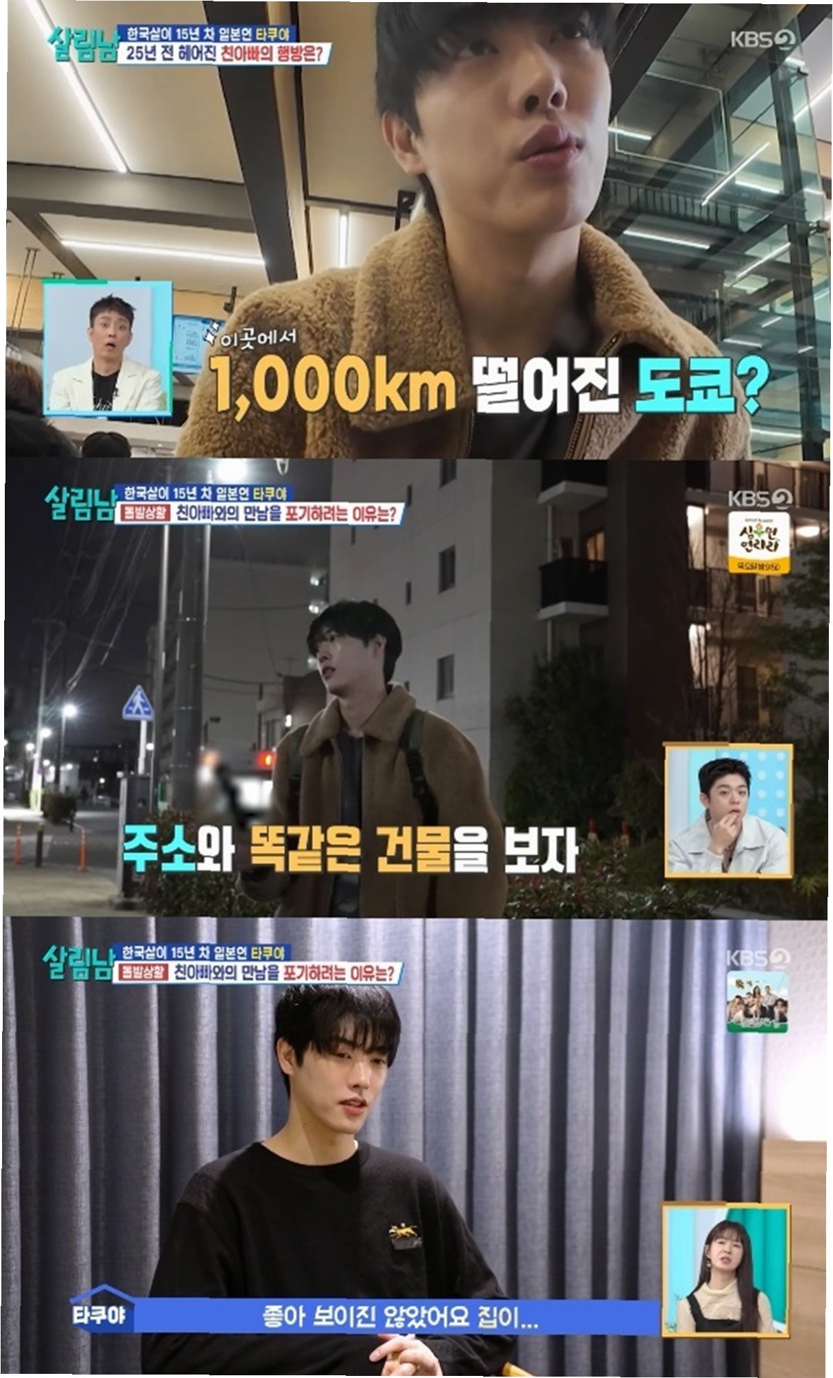 가수 타쿠야가 25년 만에 친부와 극적인 재회를 이루며 시청자들에게 깊은 감동을 선사했습니다. KBS 2TV 예능 '살림하는 남자들' 시즌2 방송에서는 아버지의 흔적을 쫓아 홋카이도에서 도쿄까지 향하는 타쿠야의 여정이 그려졌습니다. 타쿠야는 친부가 71세라는 사실에 생사 여부라도 확인하고 싶은 강한 의지를 보였고, 제작진의 도움으로 아버지의 현 거주지를 파악하며 만남을 준비했습니다.
