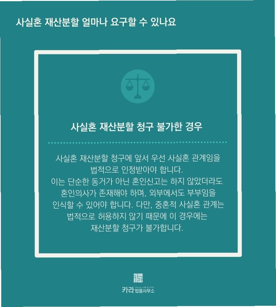 이어 "이혼을 했더라도 이전 혼인 기간의 재산분할을 제대로 정산하지 않았다면 이후 이어진 사실혼 기간까지 모두 합산하여 전체 혼인 기간 동안 형성된 재산을 분할하게 된다"라고 전했다.