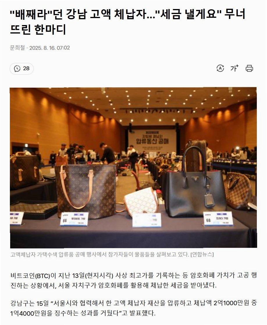 강남구의 통쾌한 반전: 암호화폐 압류로 세금 징수 성공암호화폐 가치가 치솟는 가운데, 서울 강남구가 암호화폐를 활용해 고액 체납자들의 세금을 징수하는 데 성공했습니다. 그동안 '배째라'는 식으로 세금 납부를 거부하던 체납자들이 암호화폐 압류라는 칼날 앞에 무너졌습니다. 강남구는 이 놀라운 결과를 통해 조세 정의 실현에 한 발 더 다가섰습니다. 숨겨진 재산 추적: 강남구, 암호화폐에 주목하다강남구는 악성 고액 체납자들이 재산을 가족, 지인, 차명 법인 명의로 숨기거나 부동산을 증여하는 방식으로 세금을 회피하는 수법에 주목했습니다. 주식, 동산, 부동산 대신 암호화폐에 숨겨둔 재산을 찾아내기 위해 국내 5대 가상자산거래소로부터 관련 자료를 확보했습니다. 이는 숨겨진 재산을 찾아내 세금 징수에 성공하는 ..